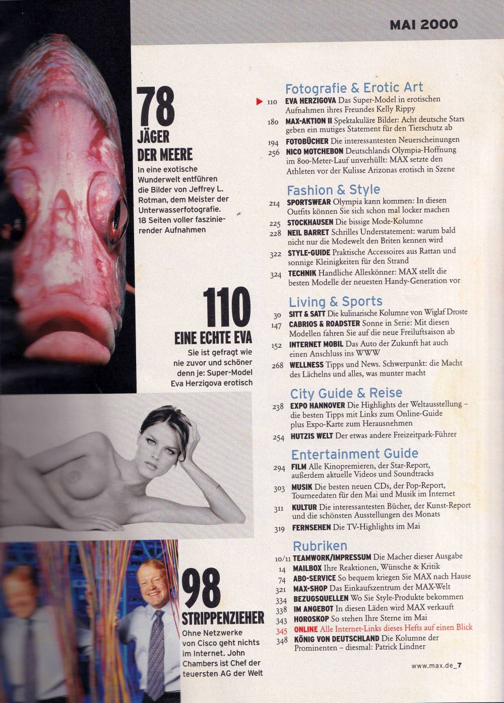 Lust auf Urlaub, Eva Herzigova erotisch, Die Amok-Droge Yaba, Cisco, Nicolas Cage, Tracy Chapman, Ashley Judd, Guido Westerwelle, Sasha sowie Mode & Beautytipps, Szene-Infos, aktuelle Film, Musik und Bücher Tipps und noch vieles andere mehr