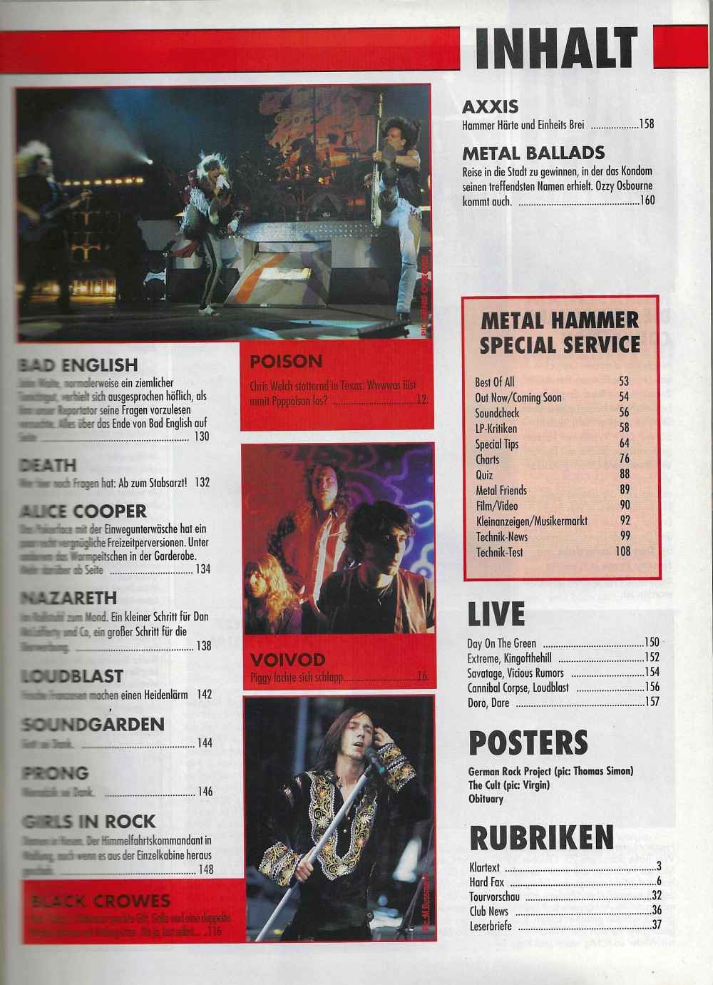 Alice Cooper, Death, Poison, Doro, Tesla, Red Hot Chilli Peppers, Nazareth, Bad English, Black Crowes, Soundgarden, 19 Seiten Plattenkritiken und vieles mehr