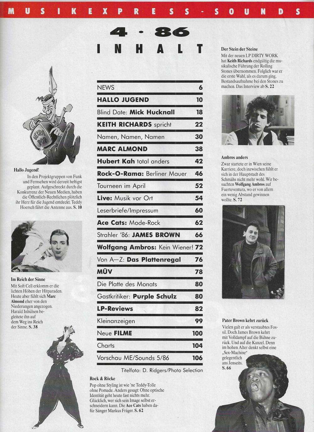 Funk und Fernsehen für die Jugend, Matt Bianco, Marc Almond, Hubert Kah, Rock-O-Rama Special: Berliner Mauer, Ace Cats, James Brown, Wolfgang Ambros, Plattenkritiken auf 17 Seiten, Filmtipps und vieles mehr