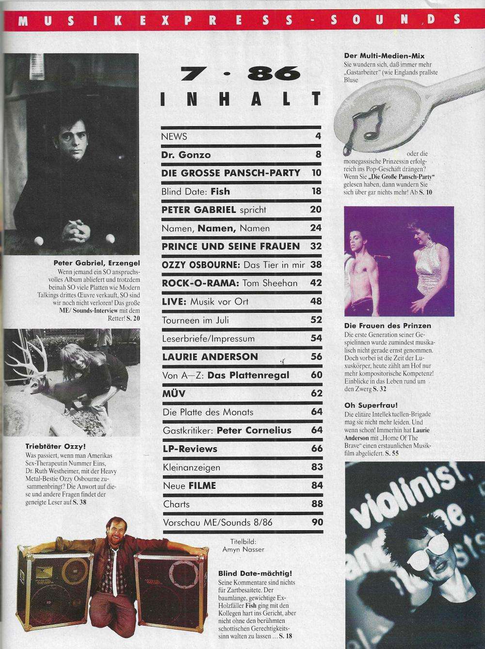 Der Multi-Medien-Mix, Alphaville, Ozzy Osbourne, Tom Sheehan (Rock-O-Rama), Laurie Anderson, Sheila E, Plattenkritiken auf 16 Seiten, Filmtipps und vieles mehr