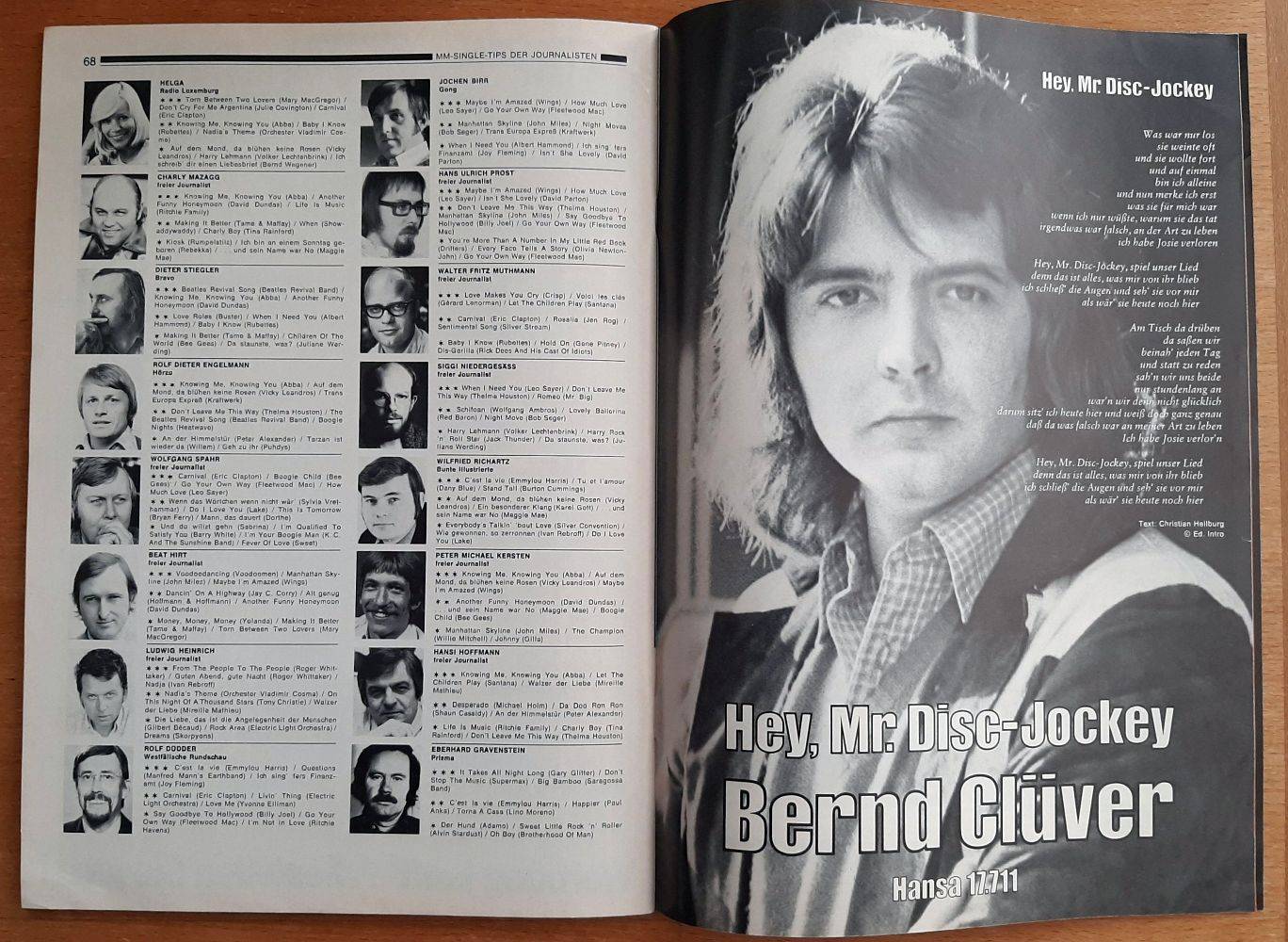 Jane, Udo Jürgens, Maggie Mae, Fats Domino, Renee Harris, Angel, Wallenstein, America, Bellamy Brothers, Gary Wright, Eagles, Ekseption, Frank Farian, Su Kramer, Dorthe, Christina Harrison, Tame & Maffay, Dennie Christian, Gary Glitter, Bernd Clüver, Wolfsmond