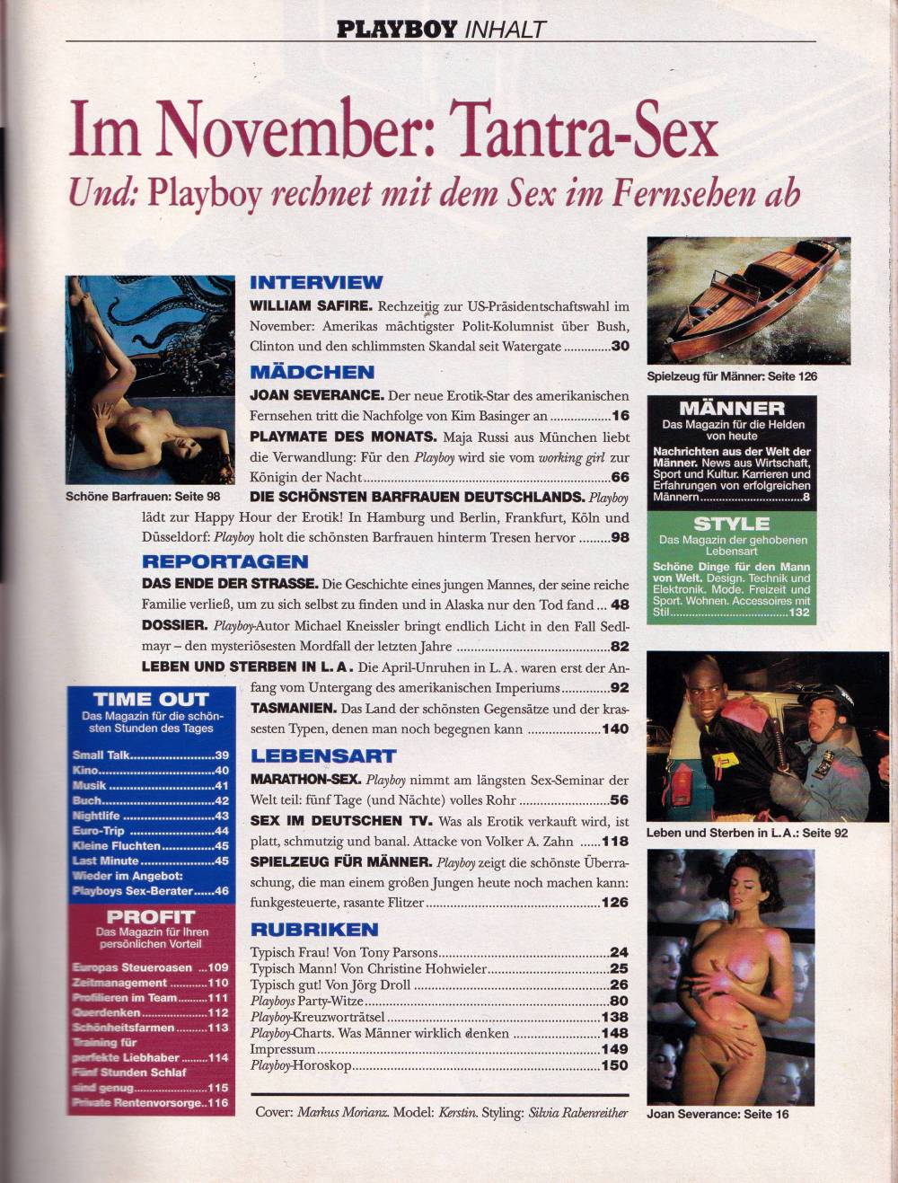 Tod in Alaska, Marathon Sex, Dossier über den Kriminalfall Sedlmayr, Leben und Sterben in L.A., Sex im deutschen TV, Playboy advisor, scene news, fashion and culture tips, short stories and much more
