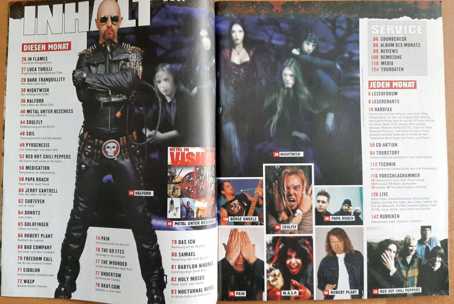 Nightwish, Halford, Red Hot Chilli Peppers, Soulfly, WASP, Papa Roach, Robert Plant, In Flames, Pain, 24 pages of record reviews, technical news, live reviews and much more