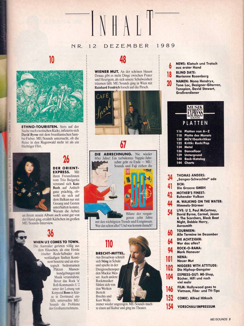 Ethno Music, Thomas Anders, U2, M Walking On The Water, Rainhard Fendrich, Mark Hanauer (Rock-O-Rama), Nena, Sting, record recommendations on 21 pages, charts, live reviews, film and video recommendations and much more