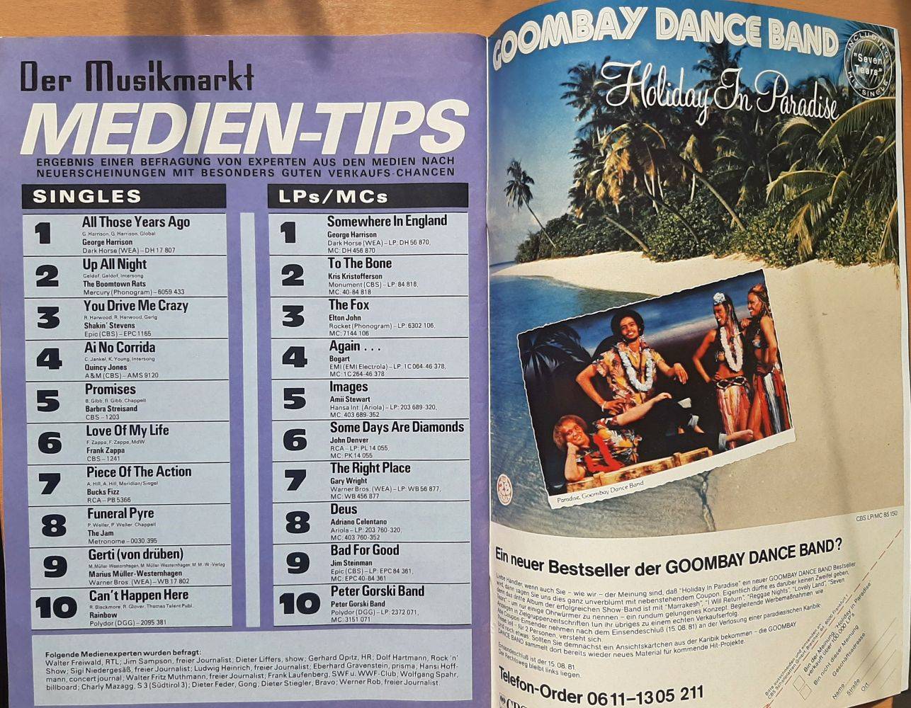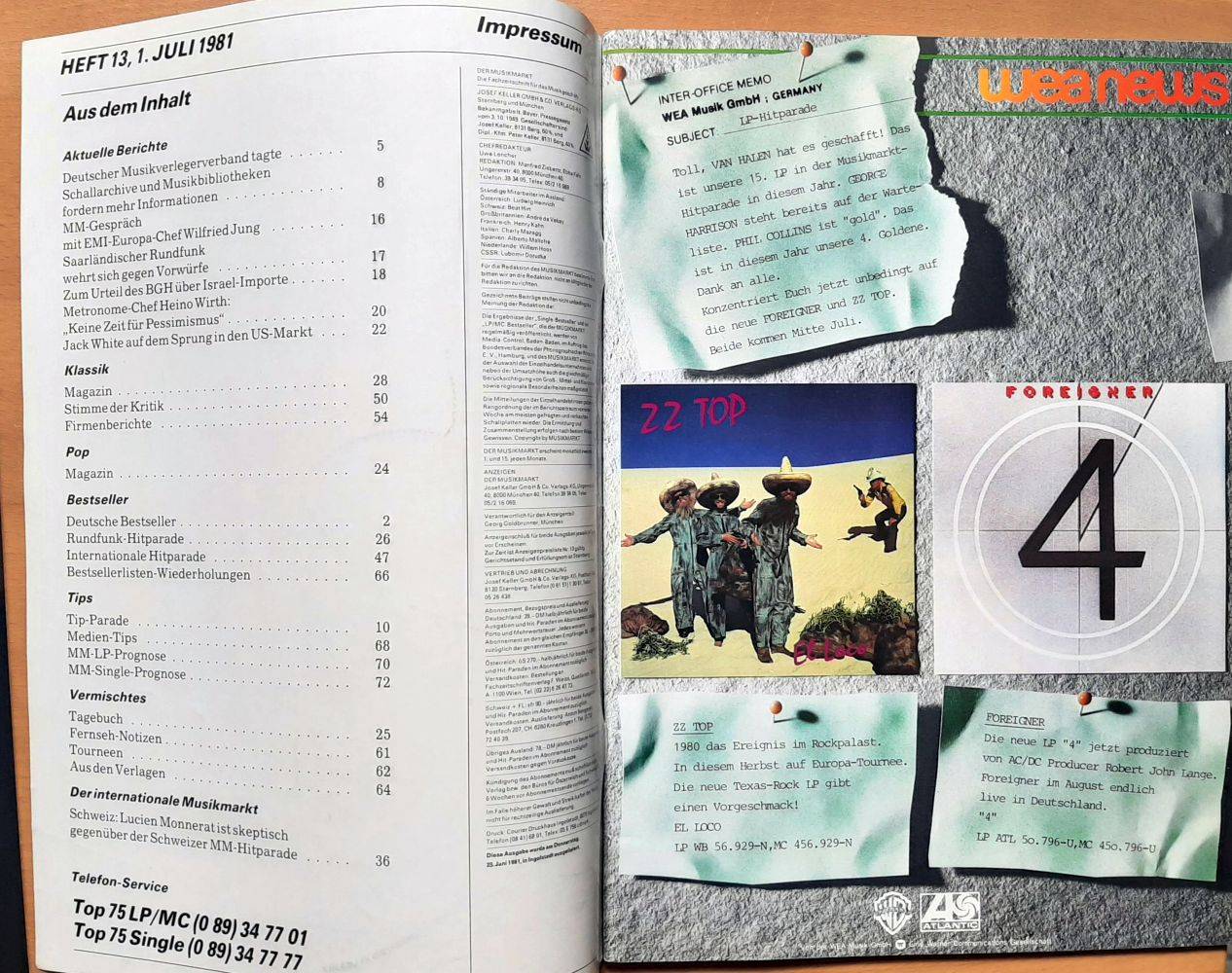 Aktuelle Neuerscheinungen auf dem deutschen Musikmarkt (Singles, MCs und LPS), diverse aktuelle nationale und internationale Charts, Händlertips, das Pop Schallplattenangebot im Juli 1981, der internationale Musikmarkt, zahlreiche Anzeigen der Musikindustrie and much more