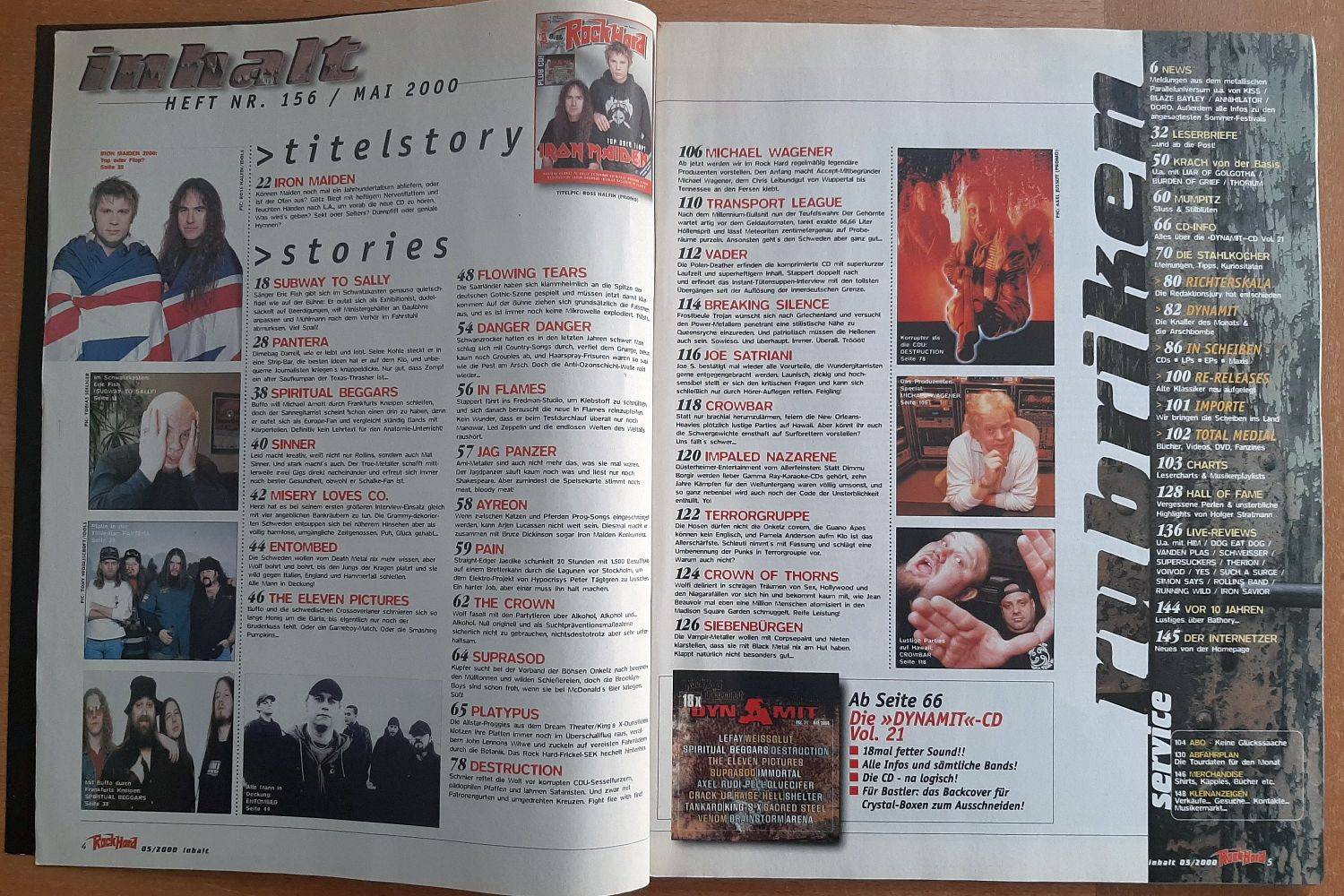 Iron Maiden, Subway To Sally, Pantera, Sinner, In Flames, Destruction, Jag Panzer, The Crown, 21 pages record reviews, DVD recommendations, live reviews and much more