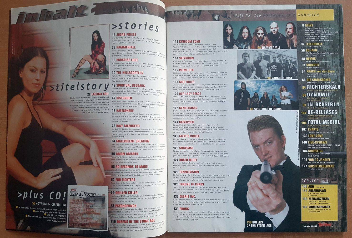 Lacuna Coil, Judas Priest, Foo Fighters, Hammerfall, Paradise Lost, Queens Of The Stone Age, Kingdom Come, 21 pages record reviews, book recommendations, live reviews and much more