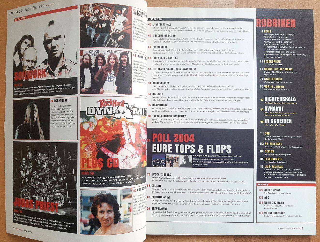 Judas Priest, Black Sabbath, Overkill, Soilwork, Bon Scott, Jim Marshall, Brainstorm, Leserpoll 2004, 22 pages record reviews, live reviews and much more