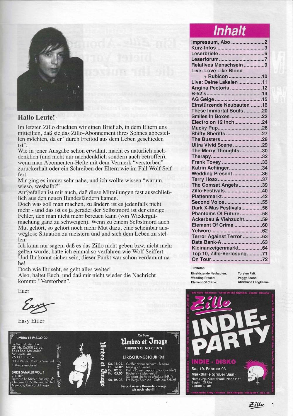 Einstürzende Neubauten, B-52's, These Immortal Souls, The Busters, Therapy, Katrin Achinger, Wedding Present, Element Of Crime, record reviews on 12 pages and much more