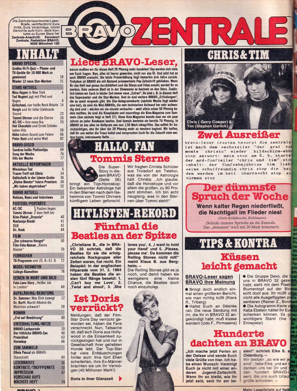 Gerd Müller, Nina Hagen, Ted Nugent, Girlschool, Korgis, Olivia Newton-John, Hot Chocolate, Abba, Peter Kent, roman, enlightenment, photo-love-story, hits of the week, record news and much more