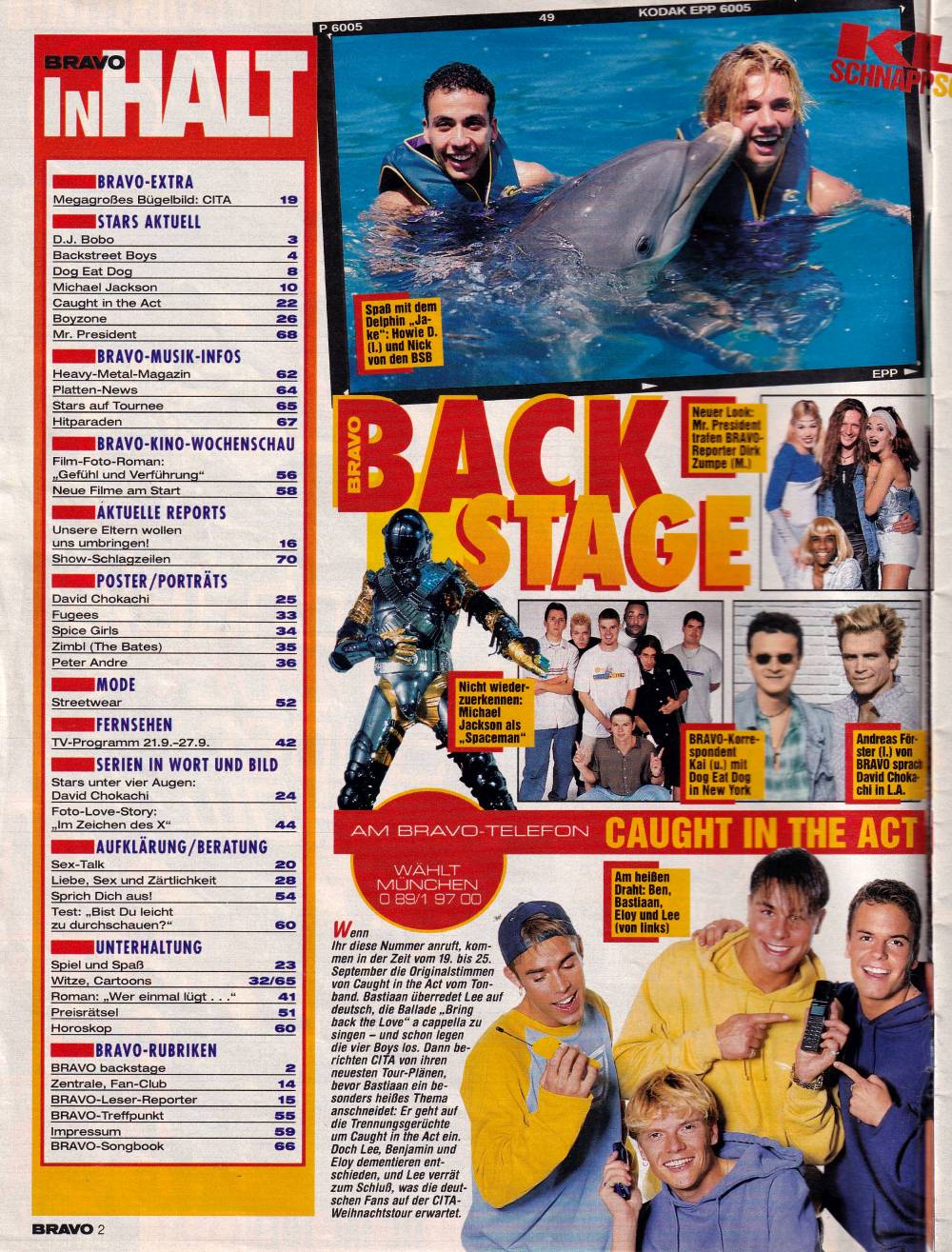 DJ Bobo, Michael Jackson, Backstreet Boys, Dog Eat Dog, David Chokachi, Boyzone, Mr. President, Tic Tac Toe, roman, photo love story, songbook, charts, fashion and film tips, cinema and record tips and much more